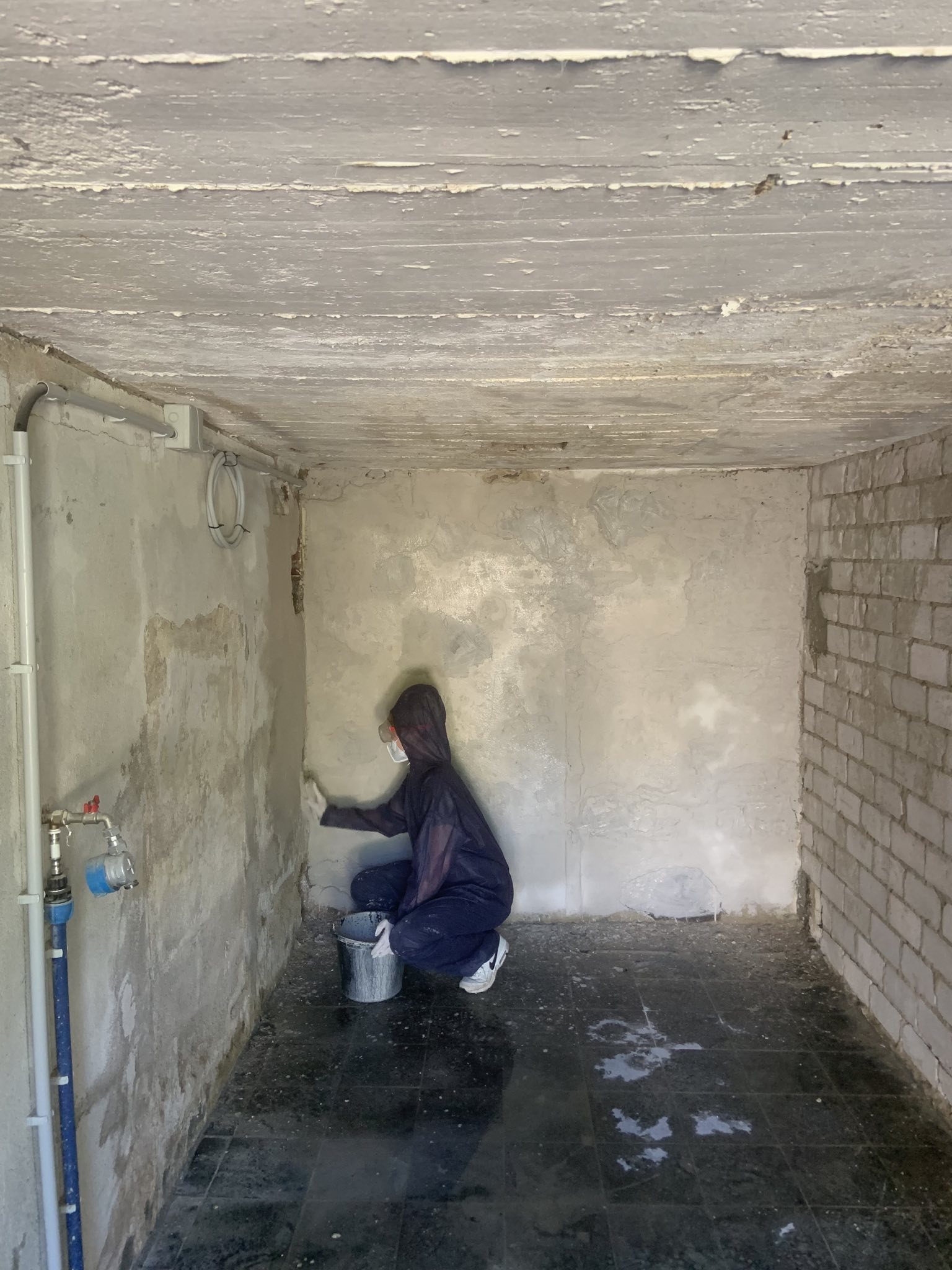 Die Gemeinschaftswerkstatt nimmt langsam Gestalt an. Wir haben jetzt in dem ehemaligen Heizungsraum ein Fenster mit Top-Aussicht, die Wände sind gekalkt, es wartet als nächstes der Boden auf einen Anstrich und eine Tür auf ihren Einbau.
